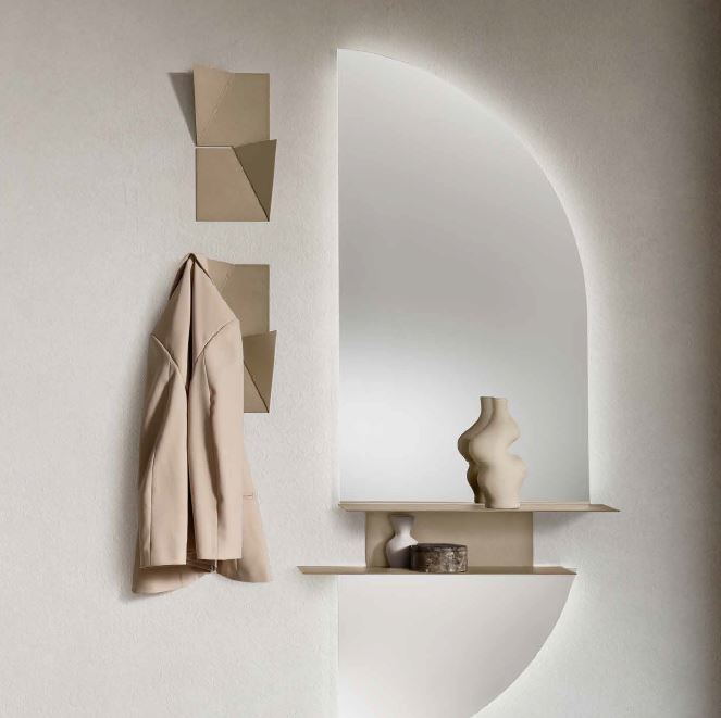 rigidity of the rectangle, serving as an elegant coat hanger. Available in one size and three colour