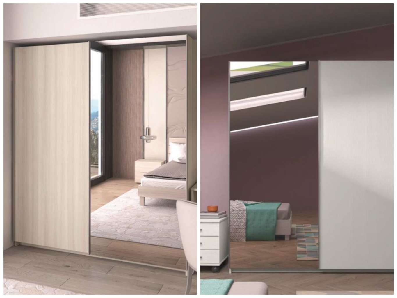 ARMADIO SCORREVOLE 2 ANTE CON 1 SPECCHIO ALTEZZA 210 LARICE BIANCO OPPURE OLMO