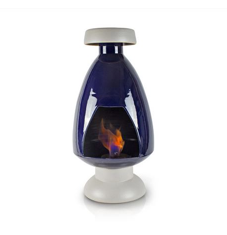 CAMINO BIOETANOLO CERAMICA CON DIFFUSORE AROMATERAPIA NEW EDGE BASSO BLU BASE GRIGIA