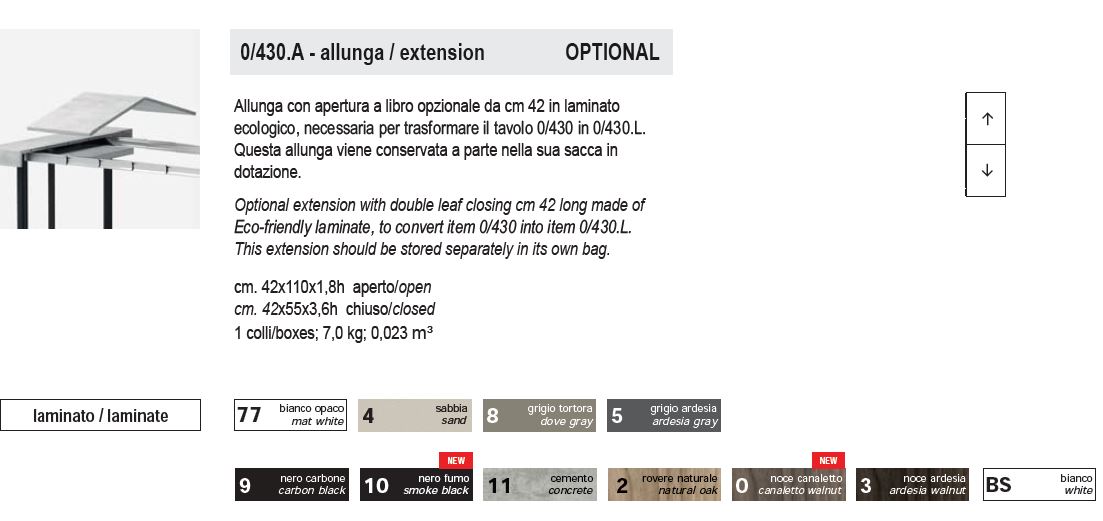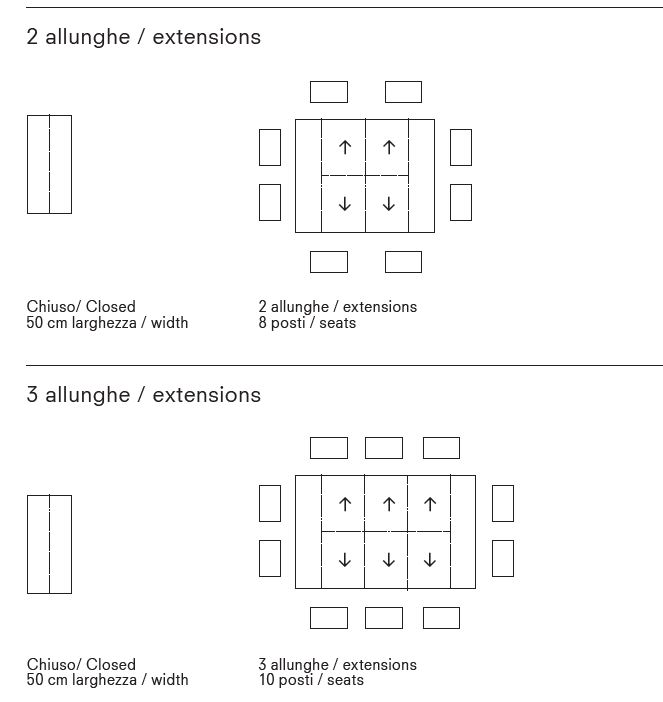 IL TAVOLO VIENE FORNITO COMPLETO DI 3 ALLUNGHE DA CM.42 CADAUNA.