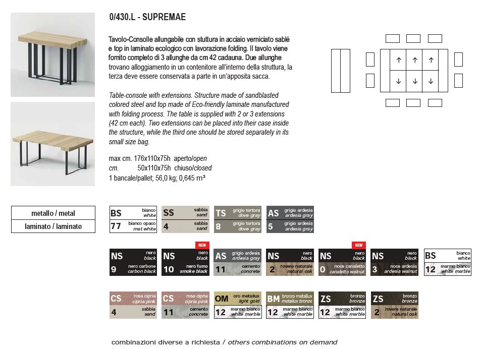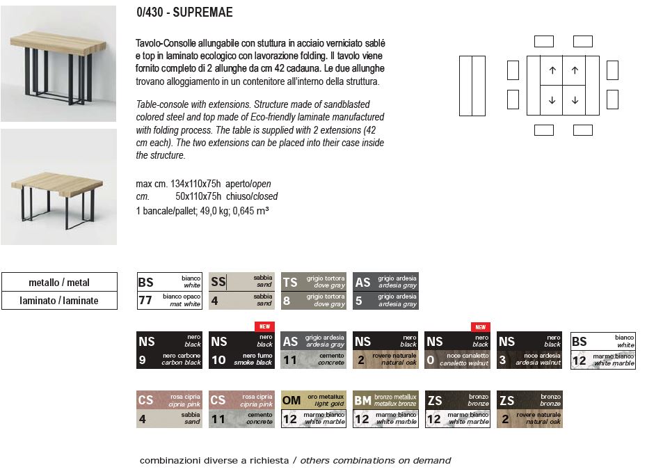 CONSOLLE TAVOLO SUPREMAE PEZZANI 110X50 ALLUNGABILE 134 FINITURE VARIE ARTICOLO 0/430