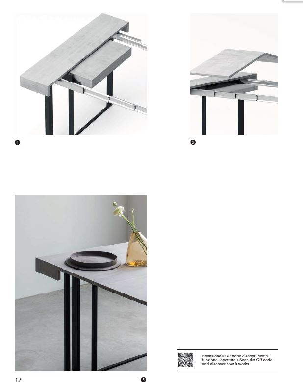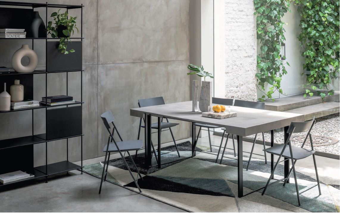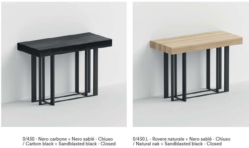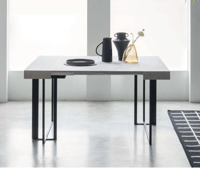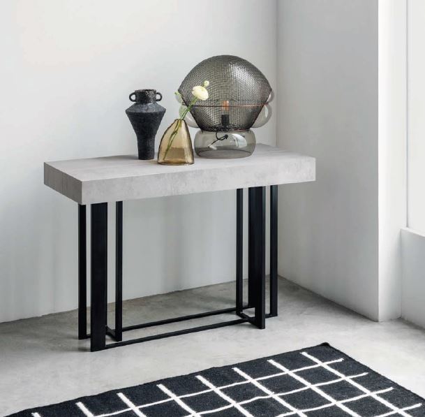 TAVOLO CONSOLLE ALLUNGABILE CON STRUTTURA IN ACCIAIO VERNICIATO SABLE' E TOP IN LAMINATO ECOLOGICO CON LAVORAZIONE FOLDING