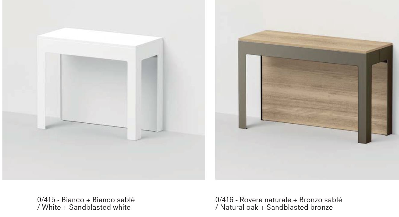 TAVOLO CONSOLLE ALLUNGABILE CON STRUTTURA IN LAMINA D'ACCIAIO VERNICIATA SABLE'.