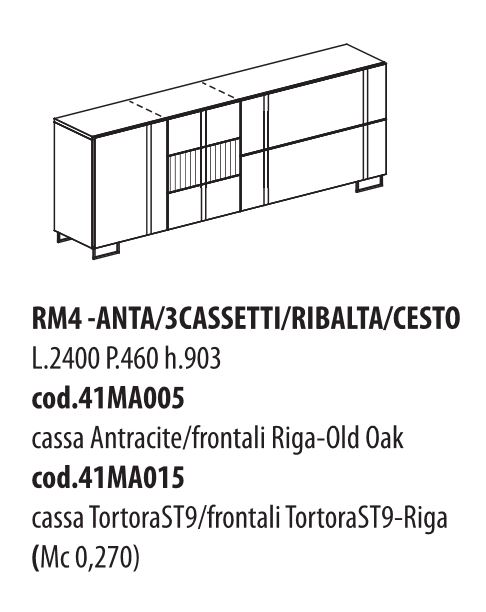 CREDENZA ANTA+3 CASSETTI+RIBALTA+CESTO RM4-015