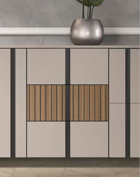 Le righe rappresentano un elemento decorativo intramontabile, capace di trasformare e modernizzare qualsiasi spazio. Questo elemento diventa protagonista, conferendo un carattere distintivo e di tendenza. Le strutture sono in tonalità neutra Tortora o Antracite che permettono di risaltare il motivo decorativo a righe presente nei frontali. Le righe, di colore grigio antracite, aggiungono un tocco di dinamismo e modernità, creando un punto focale che cattura l’attenzione.