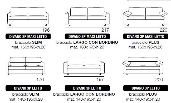 DIVANO 3 POSTI LETTO CON MATERASSO 140X20 MISURE-BRACCIOLI E RIVESTIMENTI VARI SAL-CIN140