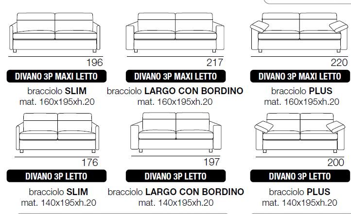 DIVANO 3 POSTI LETTO POGGIATESTA RECLINABILI CON MATERASSO 140X20 MISURE-BRACCIOLI E RIVESTIMENTI VARI SAL-DAK140