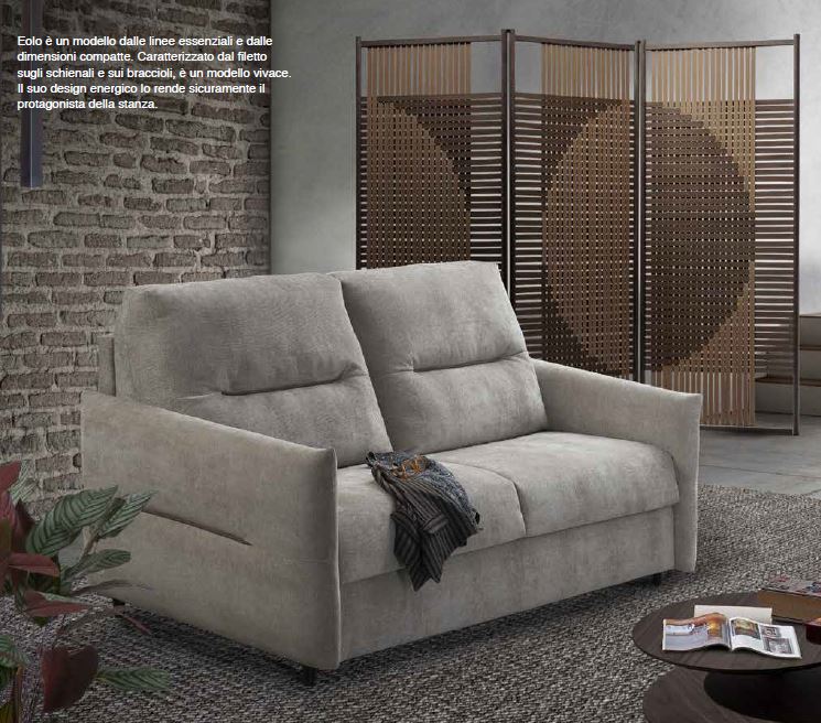 Eolo è un modello dalle linee essenziali e dalle dimensioni compatte. Caratterizzato dal filetto sugli schienali e sui braccioli, è un modello vivace. Il suo design energico lo rende sicuramente il protagonista della stanza.