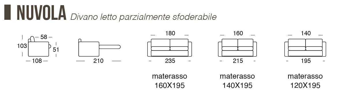 DISPONIBILE IN 3 MISURE: 235 CON MATERASSO DA 160X195, 215 CON MATERASSO DA 140X195 E 205 CON MATERASSO DA 120X195