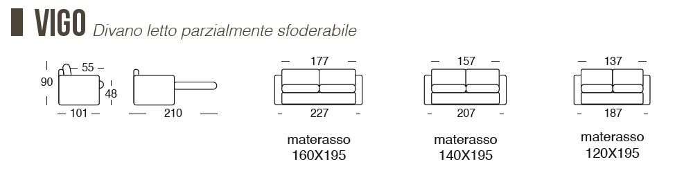 DISPONIBILE IN 3 MISURE: 227 CON MATERASSO DA 160X195, 207 CON MATERASSO DA 140X195 E 187 CON MATERASSO DA 120X195