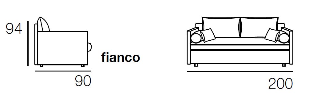 DIVANO TRASFORMABILE CM.200 CON RETE A DOGHE E MATERASSO SUPERIORE DI SERIE DA 80X190X14, CON COPRIMATERASSO IMBOTTITO, DUE RULLI E DUE CUSCINETTI DI SERIE
