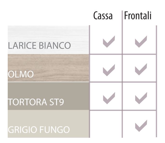 STRUTTURA COLORI: LARICE BIANCO, OLMO, TORTORA