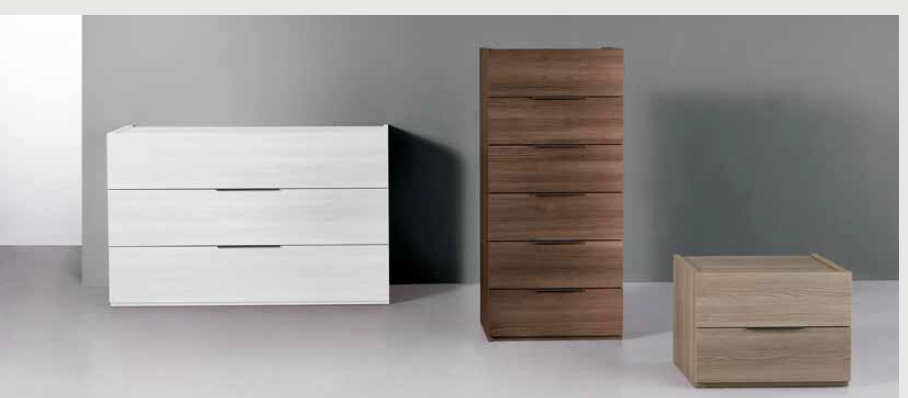 TOP, FIANCHI E CASSETTI SONO REALIZATI CON PANNELLI NOBILITATI OLMO GREY, QUERCIA BROWN, FRASSINATO BIANCO DI SPESSORE 20