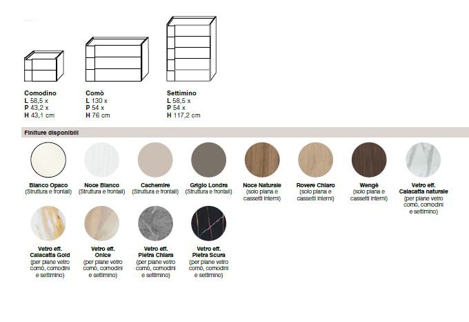 STRUTTURA E FRONTALI: NOCE BIANCO, BIANCO OPACO, CASHMERE, GRIGIO LONDRA