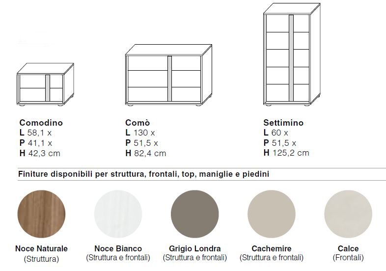 FRONTALI: NOCE BIANCO, NOCE NATURALE, CACHEMIRE, GRIGIO LONDRA, CALCE