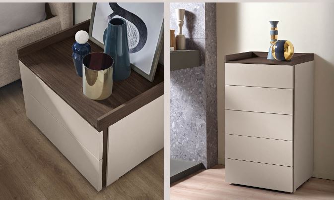 STRUTTURA E FRONTALI: NOCE BIANCO, BIANCO OPACO, CASHMERE, GRIGIO LONDRA