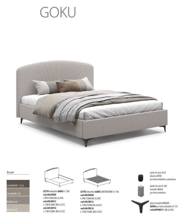 LETTO IMBOTTITO CON O SENZA CONTENITORE SINGOLO-PIAZZA MEZZO-MATRIMONIALE COLORI VARI GOKU