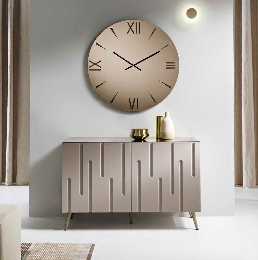 Scilla è una madia dal carattere scultoreo, in cui il design incontra la materia. Le ante in MDF sono percorse da incisioni verticali che salgono