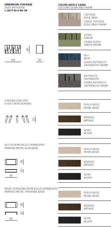 nelle versioni tortora, verde e antracite, oppure a contrasto nella variante blu con struttura antracite. La base in metallo verniciato,
