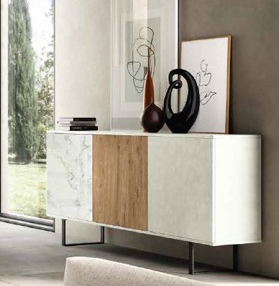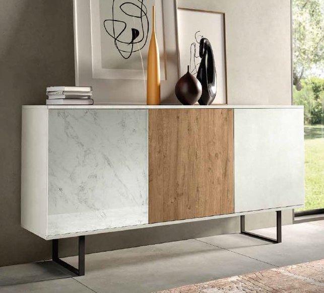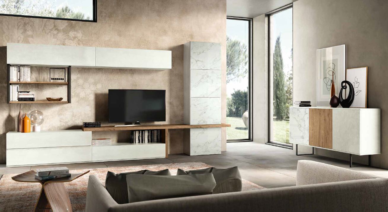 IN FOTO: BIANCO CALCE, ROVERE NORDICO, VETRO MARMO WHITE