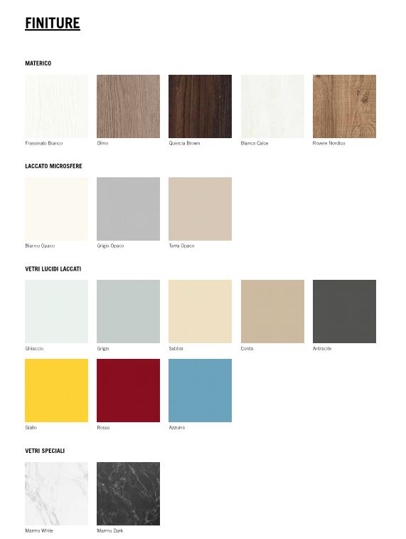 FRONTALE STESSI COLORI+ROVERE NORDICO, BIANCO OPACO, GRIGIO OPACO, TERRA OPACO, VETRO LUCIDO GHIACCIO-ROSSO-SABBIA-AZZURRO-CORDA-GRIGIO-GIALLO-ANTRACITE E VETRO DECOR MARMO WHITE-MARMO DARK
