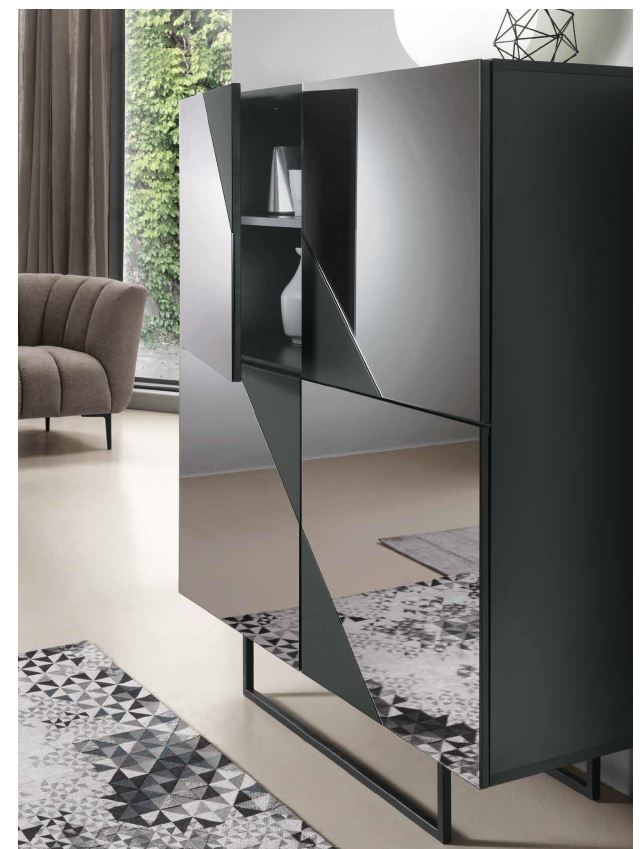 Arte è una madia che cattura lo sguardo grazie alla forza grafica delle sue superfici a specchio. Le ante in MDF, rivestite da vetri specchiati che alternano geometrie lucide e opache, disegnano un motivo elegante e contemporaneo. La scocca in nobilitato, coordinata in tinta, si completa con una base in metallo verniciato, proposta in tre differenti modelli. Disponibile in due misure – 120 e 180 cm – Arte riflette lo stile in ogni dettaglio.