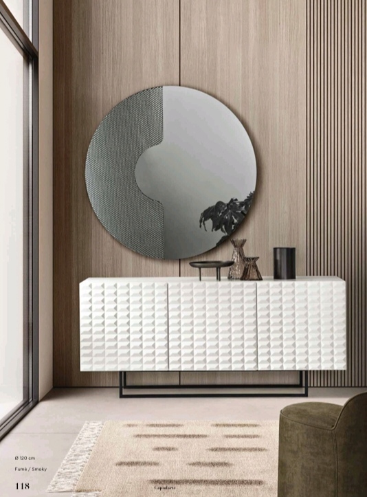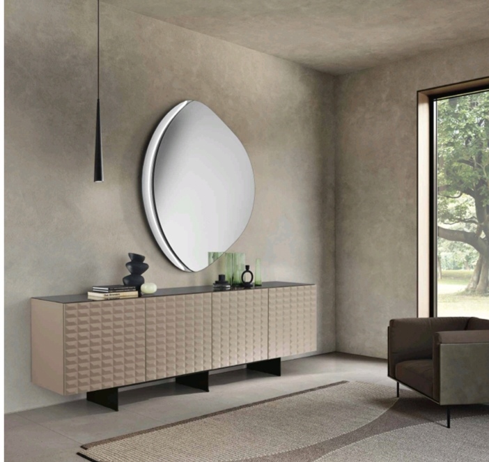 Un omaggio al patrimonio rchitettonico italiano, questa madia reinterpreta con eleganza la celebre facciata del Palazzo dei Diamanti di Ferrara. Le ante in MDF presentano una texture geometrica tridimensionale che richiama i rilievi a punta di diamante, creando un affascinante gioco di luci e ombre. La scocca in nobilitato si combina a una base in metallo verniciato disponibile in tre different modelli, per un risultato grafico e contemporaneo. Come optional, il top può essere arricchito da un elegante vetro a specchio, bronzo o fumé, per un ulteriore tocco di stile e raffinatezz Una madia scenografica, capace di portare carattere in ogni Un omaggio al patrimonio architettonico italiano, questa madia reinterpreta con eleganza la celebre facciata del Palazzo dei Diamanti di Ferrara. Le ante in MDF presentano una texture geometrica tridimensionale che richiama i rilievi a punta di diamante, creando un affascinante gioco di luci e ombre. La scocca in nobilitato si combina a una base in metallo verniciato disponibile in tre differenti modelli, per un risultato grafico e contemporaneo. Come optional, il top può essere arricchito da un elegante vetro a specchio, bronzo o fumé, per un ulteriore tocco di stile e raffinatezza. Una madia scenografica, capace