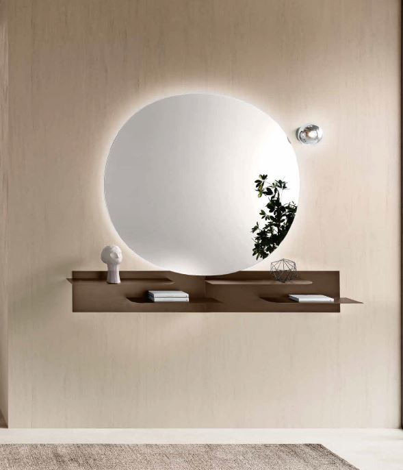 Mensola da parete prodotta in metallo dal design moderno. Un pannello rettangolare rappresenta la struttura principale dal quale sporgono due ripiani orizzontali con dettagli curvi. Disponibile in un’unica dimensione e in tre varianti colore.