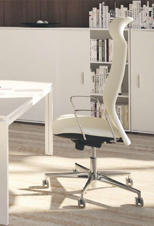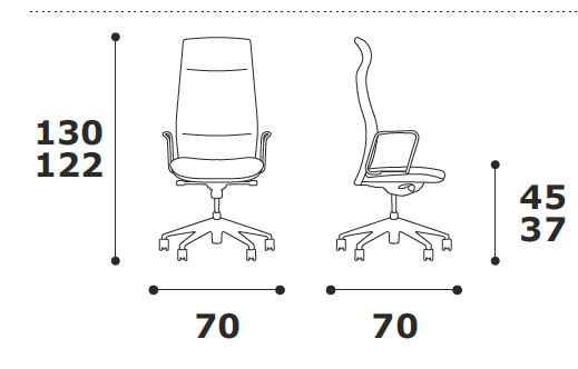 Poltrona direzionale, realizzata con struttura in tubolare d'acciaio, sedile in multistrato di pioppo e faggio mm 12, e imbottitura in poliuretano espanso, schienale regolabile con meccanismo sincronizzato bloccabile in più posizioni con antishock, pompa a gas in acciaio per la regolazione in altezza della stessa.