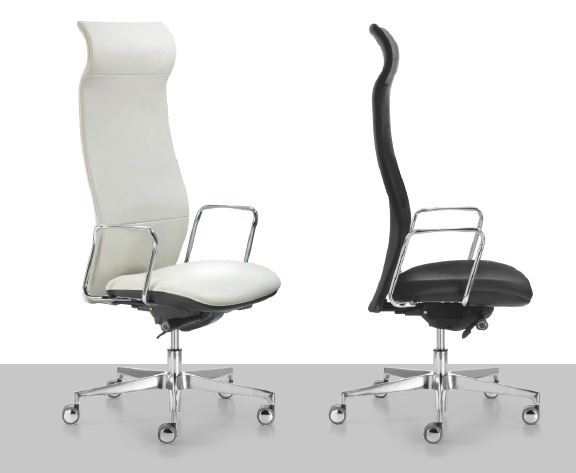 Versione con braccioli cromati, pompa a gas in acciaio cromato e base in alluminio pressofuso diametro mm 700 con doppie ruote diametro mm 65.