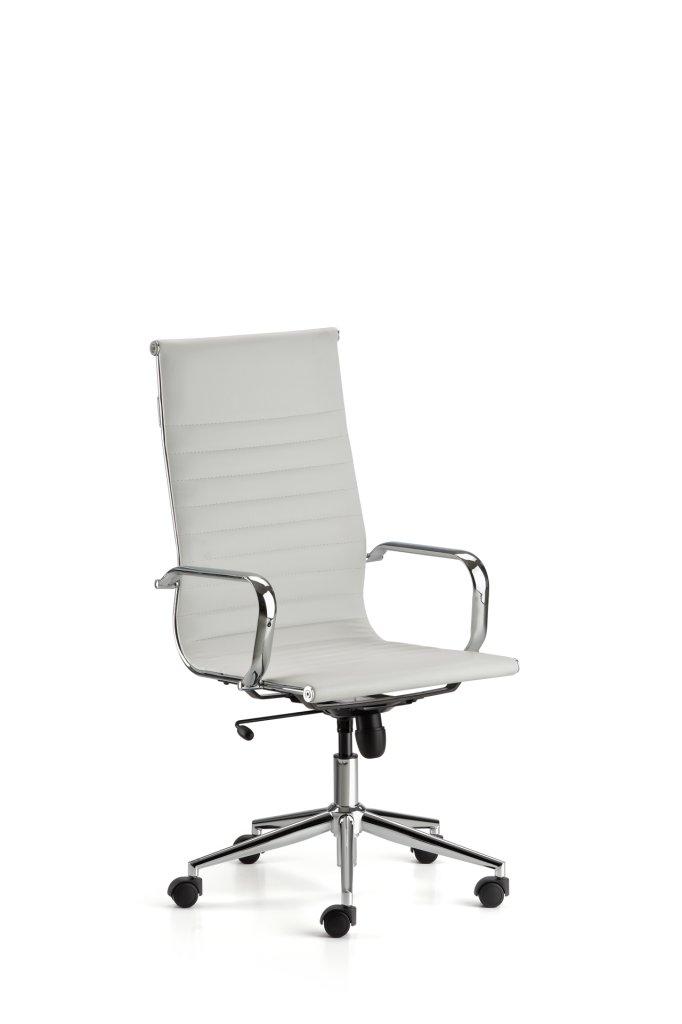 POLTRONA UFFICIO SCHIENALE ALTO CROMO ECOPELLE BIANCA O NERA