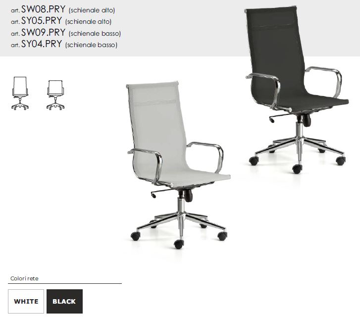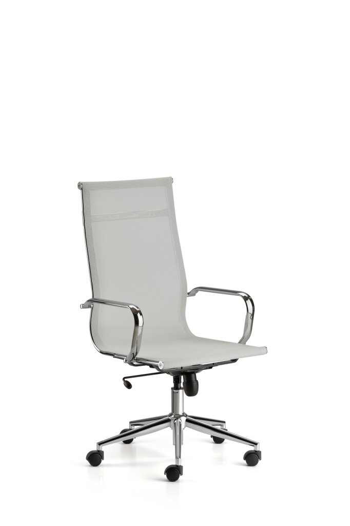 POLTRONA UFFICIO SCHIENALE ALTO CROMO RETE BIANCA O NERA