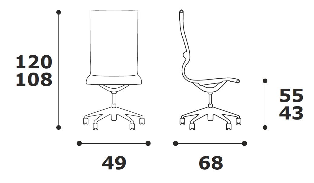 Poltrona direzionale monoscocca in nylon nero, realizzata con struttura sedile e schienale in tessuto portante di vari colori, movimento oscillante, pompa a gas per la regolazione in altezza della stessa, base in nylon nero diametro mm 700 e doppie ruote diametro mm 65.