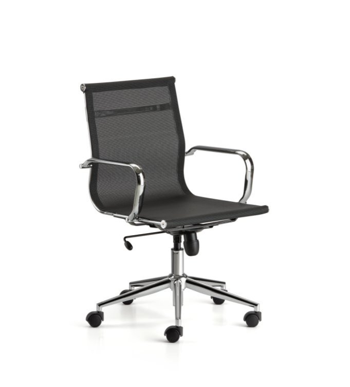 POLTRONA UFFICIO SCHIENALE BASSO CROMO RETE BIANCA O NERA