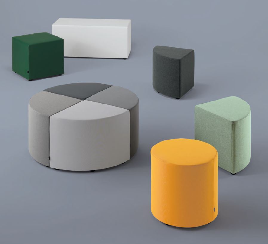 POUF 40 ACCIAIO COLORI VARI CON SEDUTA IMBOTTITA ECOPELLE-MICROFIBRA-TESSUTO