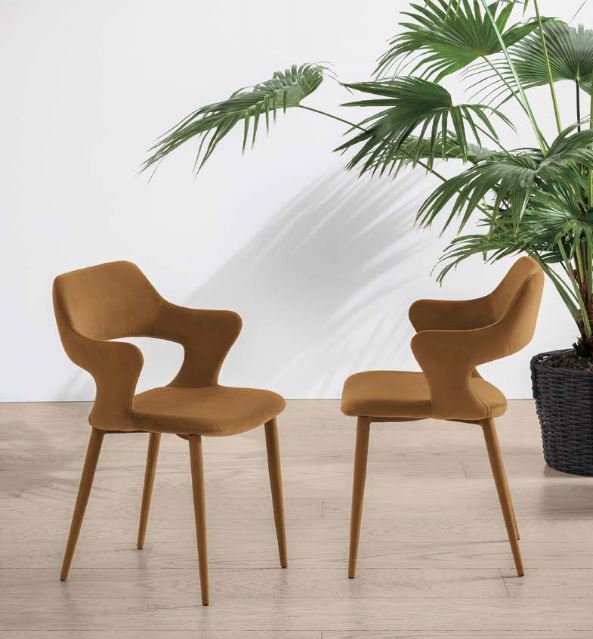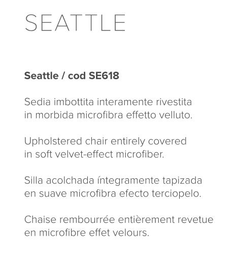 Sedia imbottita interamente rivestita in morbida microfibra effetto velluto.