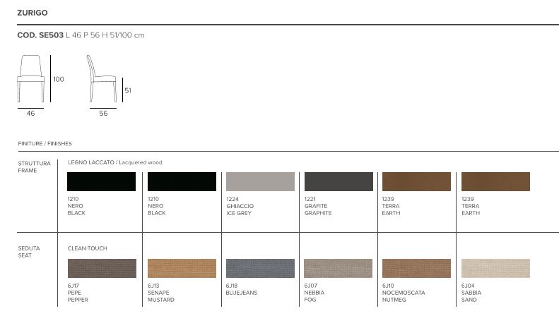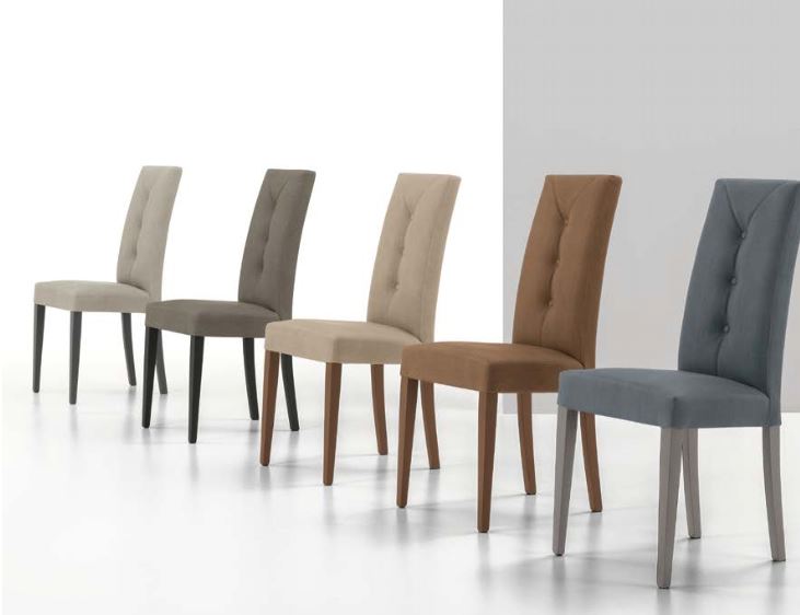 Sedia con struttura in legno laccato e seduta imbottita e rivestita in Clean-Touch.
