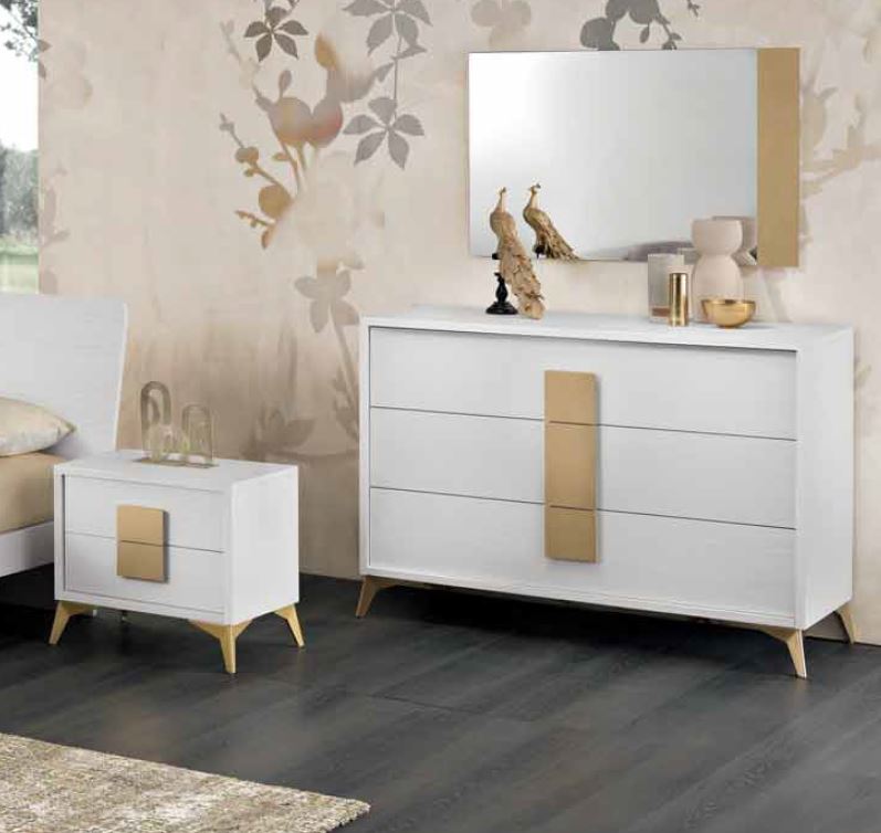 SET 2 COMODINI CON MANIGLIE E PIEDINI ORO