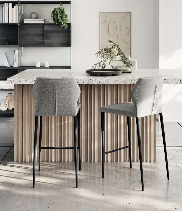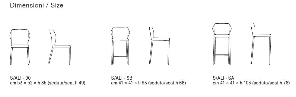 Questa confortevole sedia ha il sedile realizzato in laminato con imbottitura in spugna di poliuretano espanso ad alta densità, ricoperto a scelta con una ampia gamma di tessuti, vera pelle o similpelle. Inoltre la seduta può essere ulteriormente personalizzata, scegliendo l’esterno dello schienale trapuntato oppure colori e materiali diversi tra fronte e retro, creando abbinamenti unici ed esclusivi. La struttura è in tubolare di acciaio tondo conificato e verniciato sablé ed è disponibile anche la versione sgabello
