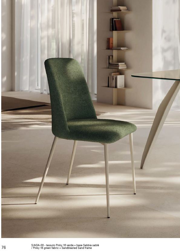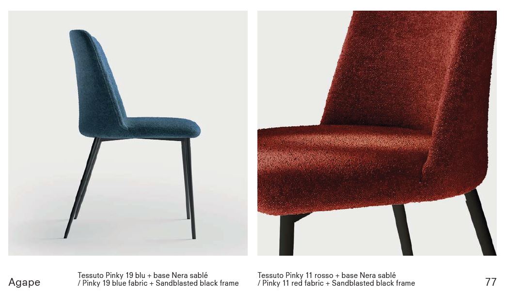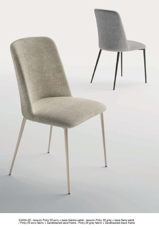 Questa elegante e confortevole sedia ha il sedile realizzato in legno multistrato di betulla con imbottitura in spugna di poliuretano espanso ad alta densità e ricoperti a scelta con una ampia gamma di tessuti, vera pelle o similpelle. Inoltre la seduta può essere ulteriormente personalizzata, scegliendo l’esterno dello schienale trapuntato oppure colori e materiali diversi tra fronte e retro, creando abbinamenti unici ed esclusivi. La struttura è in tubolare d’acciaio tondo conificato e verniciato sablè.