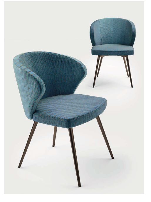 Questa elegante poltroncina offre sorprendenti combinazioni di stile.Sedile e schienale sono realizzati inlegno multistrato di betulla, imbottiti con spugna di poliuretano espanso ad alta densità e ricoperti a scelta con una ampia gamma di tessuti, vera pelle o similpelle.