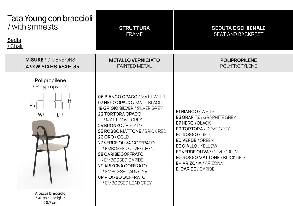 LA SEDIA PIU' VENDUTA ORA CNCHE CON VERSIONE BRACCIOLO, DAI TANTI COLORI COMBINABILI !