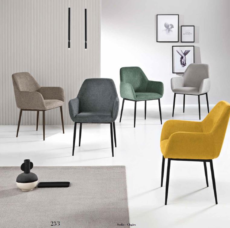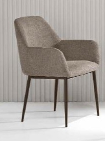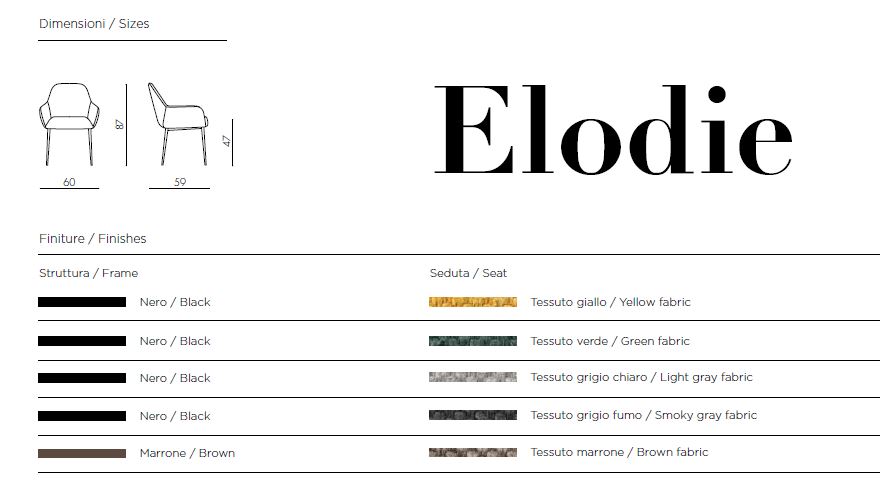 Elodie è una sedia imbottitadal carattere deciso, che ricorda nelle proporzioni una poltroncina compatta.