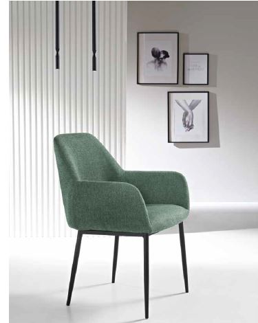 Sedia imbottita in tessuto con struttura in metallo verniciato. Disponibile