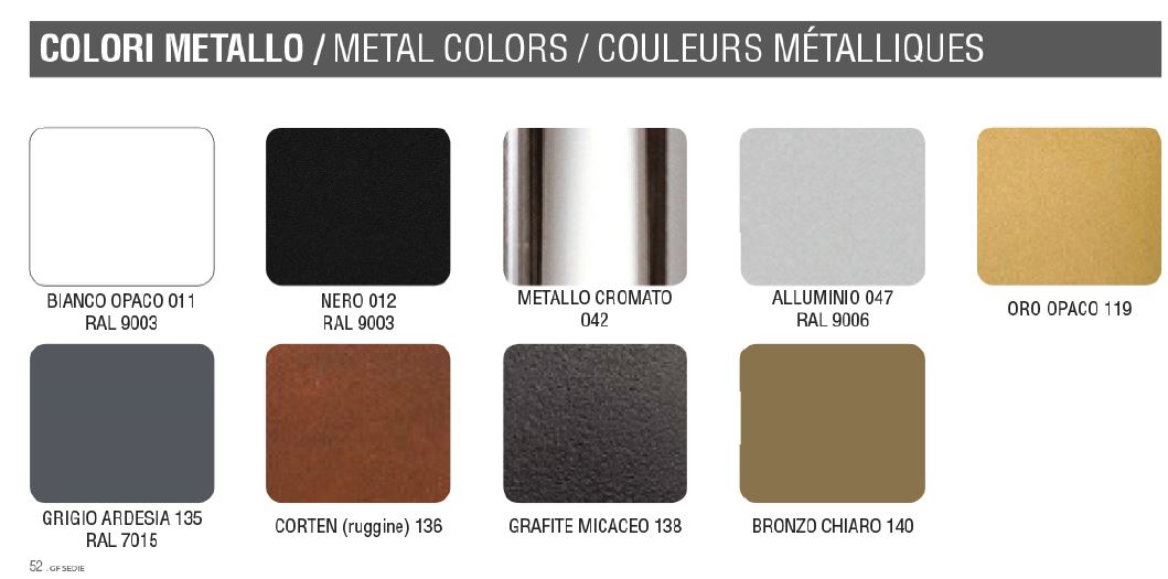 BASAMENTO METALLO FINITURE: BIANCO OPACO 011, NERO OPACO 012, ALLUMINIO GOFFRATO 047, GRIGIO ARDESIA 135