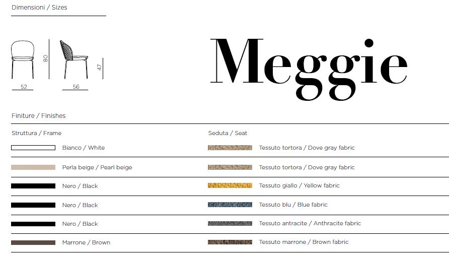 Lo sgabello Meggie riprende la sobria eleganza della sedia Meggie, con seduta imbottita in tessuto disponibile in più
