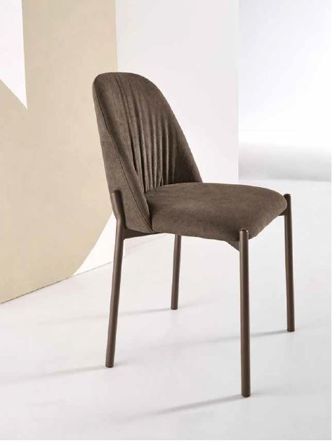 naturalezza sulla struttura in metallo verniciato, mentre lo schienale arrotondato, arricchito da una piega decorativa che