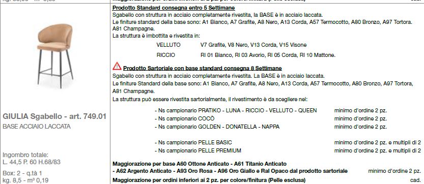 -VELLUTO COLORI: V7 GRAFITE, V8 NERO, V13 CORDA, V15 VISONE
