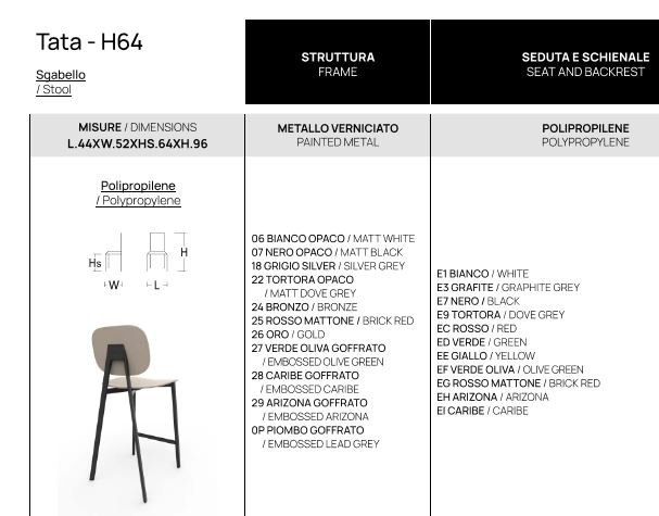 LARGHEZZA CM.44 PROF.53 ALTEZZA 96_SEDUTA 64 OPPURE CON MAGGIORAZIONE SU RICHIESTA ADATTO PER BAR ALTEZZA 107-SEDUTA 75