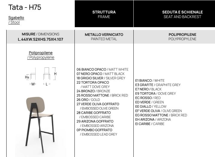 SEDUTA E SCHIENALE POLIPROPILENE COLORI: BIANCO, GRAFITE, NERO, TORTORA, ROSSO VERDE, GIALLO, VERDE OLIVA, ROSSO MATTONE, ARIZONA, CARIBE